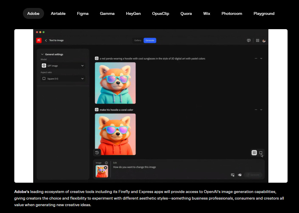Adobe: Integrating it into Firefly and Express for creative flexibility.